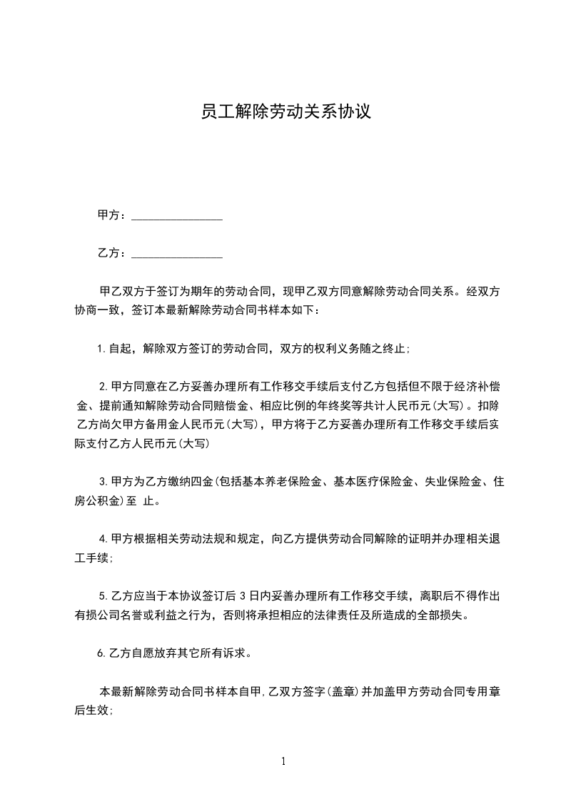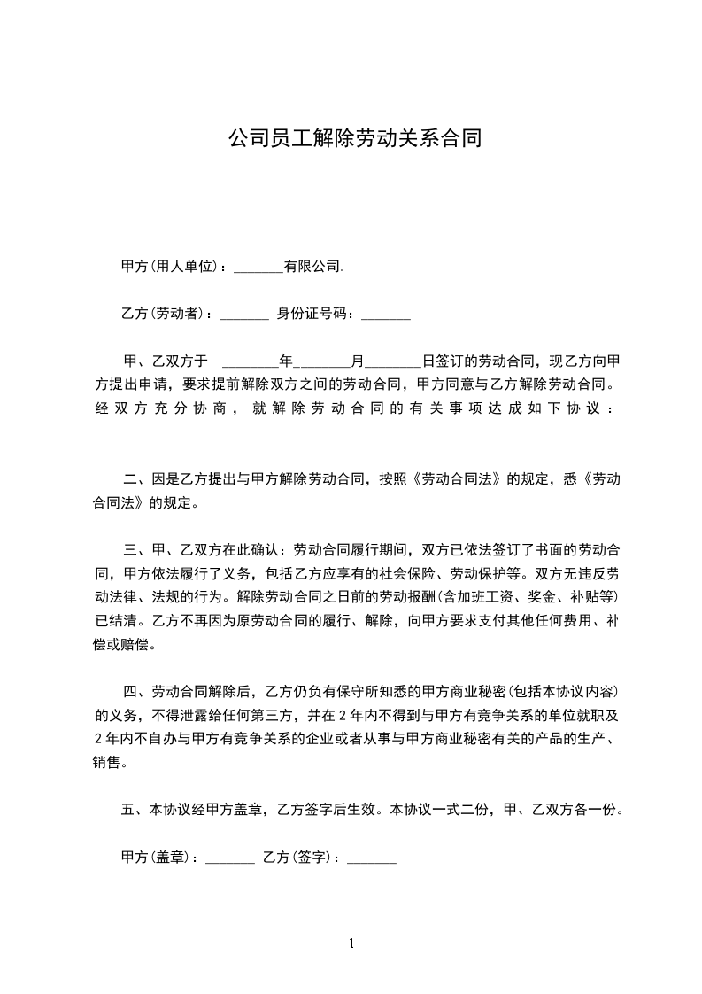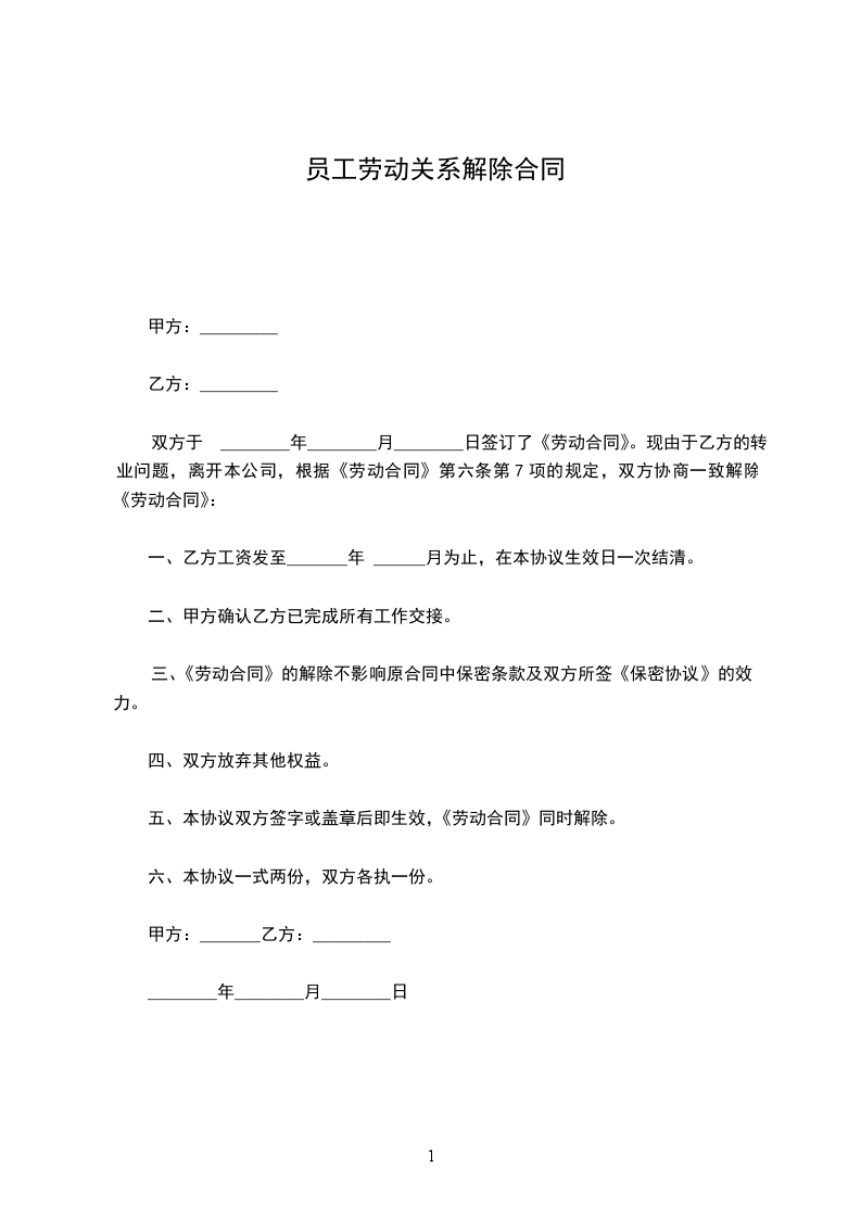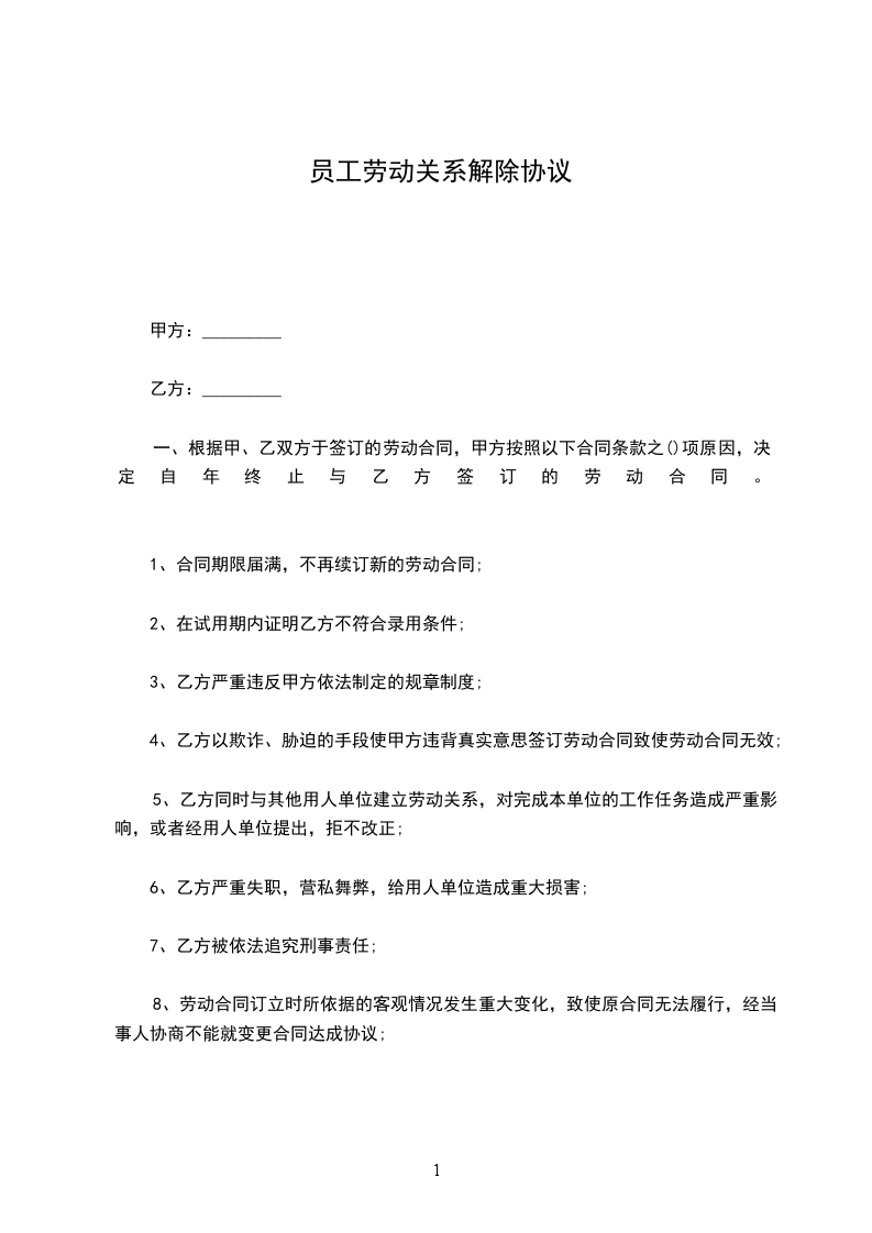 兹有我单位员工__________(居民身份证 :____________________劳动合同期限 :____________________),因下列第__________项原因与本单位终止(解除)劳动合同。
