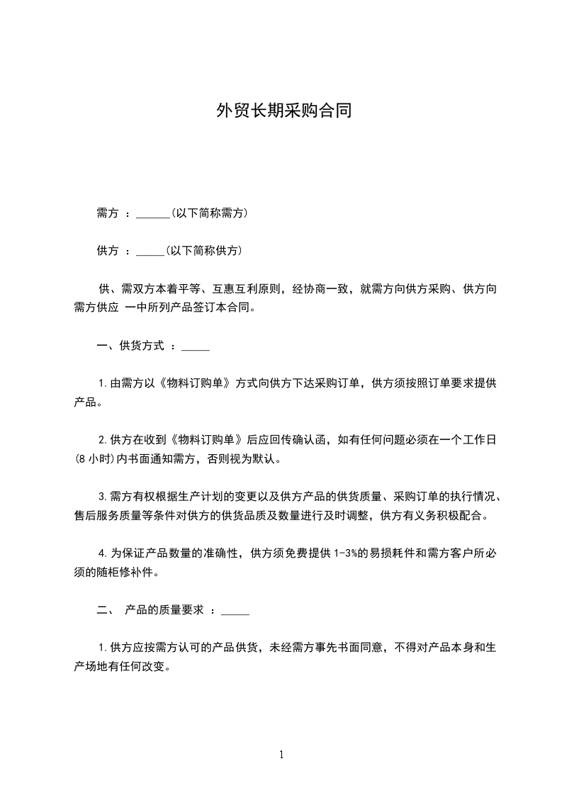 合同期限为 : 年 月 日至 年 月 日鉴 供、需双方合作的长期性和稳定性,在本合同期满前三个月内,如合同一方提出需延长合同的有效期,经另一方确认后可延长合同期限。