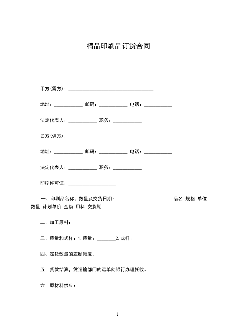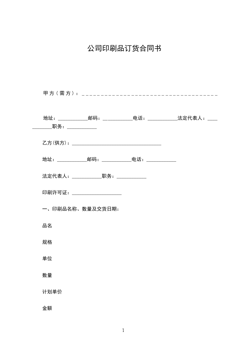 兹因甲方生产需要向乙方订印下列印刷品,经双方协商同意订立合同如下: