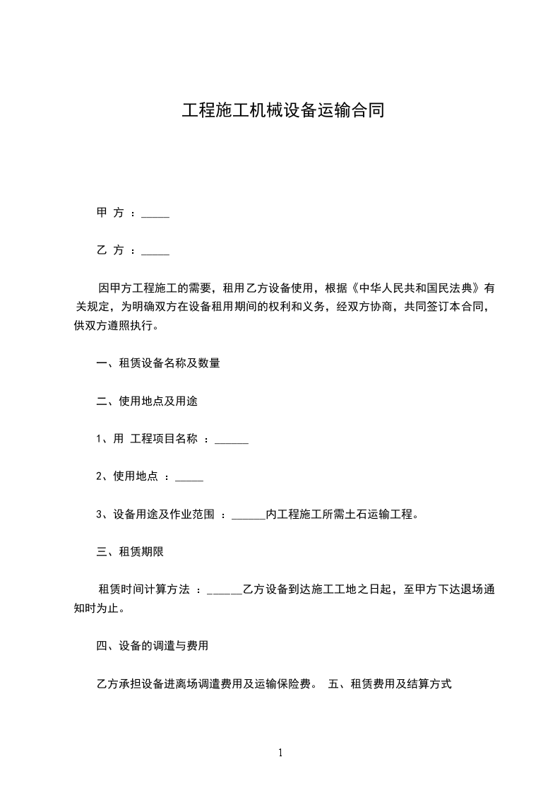 乙方承担设备进离场调遣费用及运输保险费。 五、租赁费用及结算方式