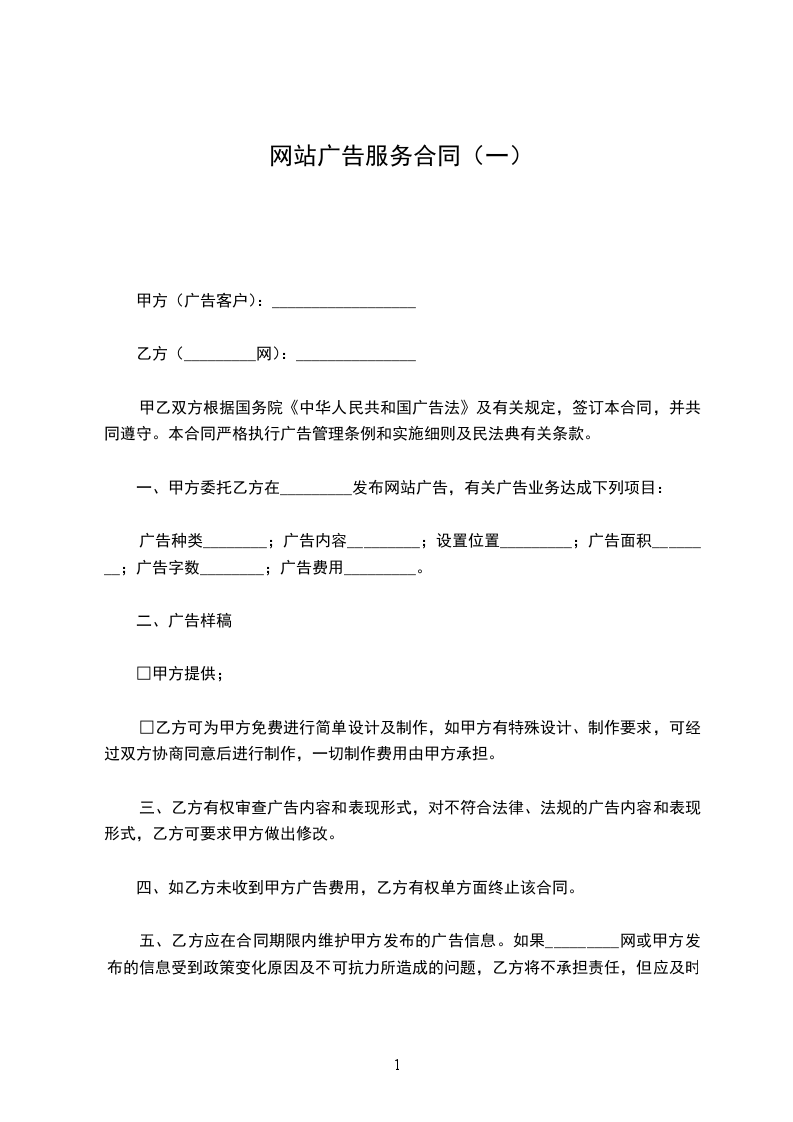一、甲方委托乙方在_________发布网站广告,有关广告业务达成下列项目:
