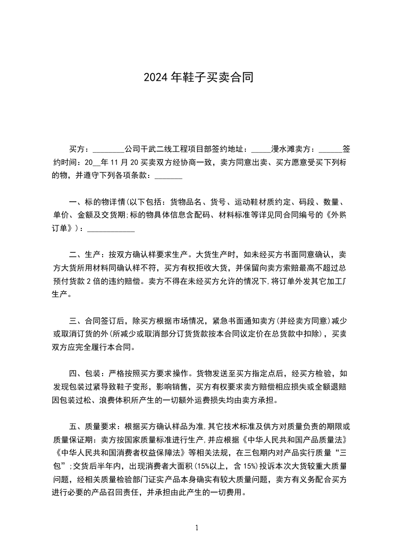 二、交期 :交货日期为_____年____月____日。