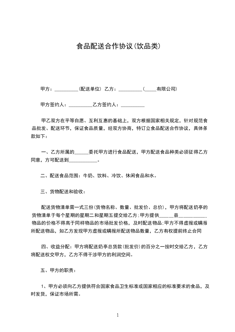 二、业务办理方式:现款现货,货到先付款后提货。运输交货方式:代运制交货(只限长途)。乙方提货额达_________元。甲方负责组织货源。