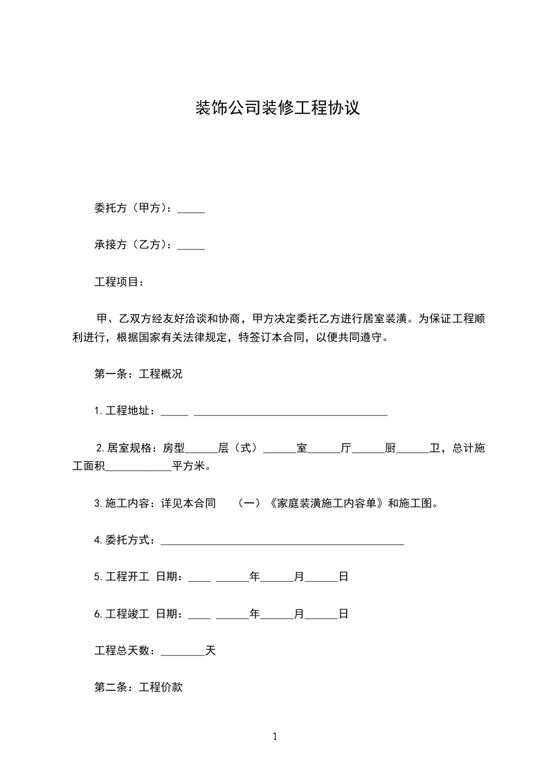 工程价款(金额大写)___________________元,详见本合同 (二)《家庭装潢工程材料预算表》。