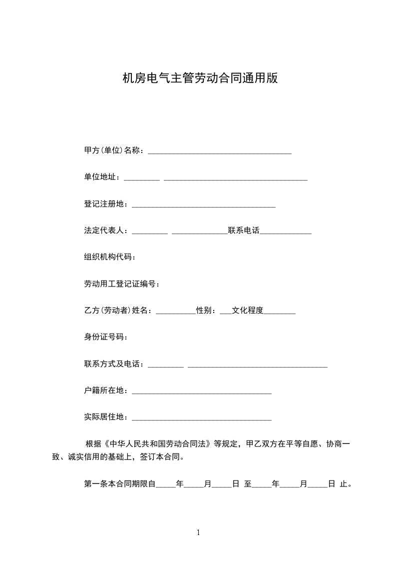 第一条本合同期限自_____年_____月_____日 至_____年_____月_____日 止。