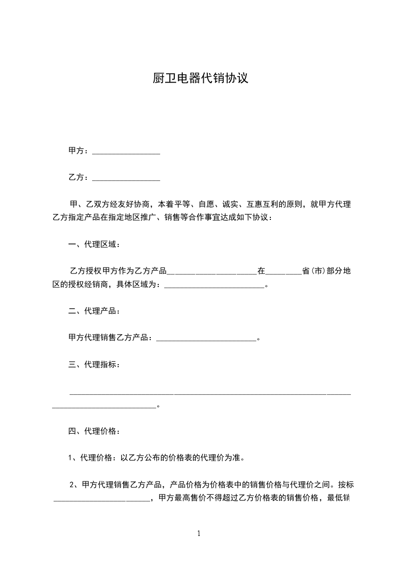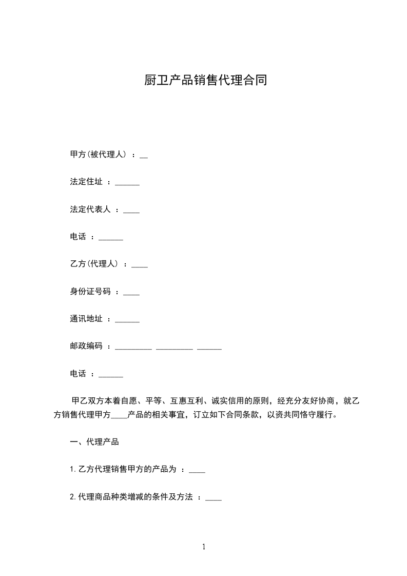 甲乙双方本着自愿、平等、互惠互利、诚实信用的原则,经充分友好协商,就乙方销售代理甲方____产品的相关事宜,订立如下合同条款,以资共同恪守履行。