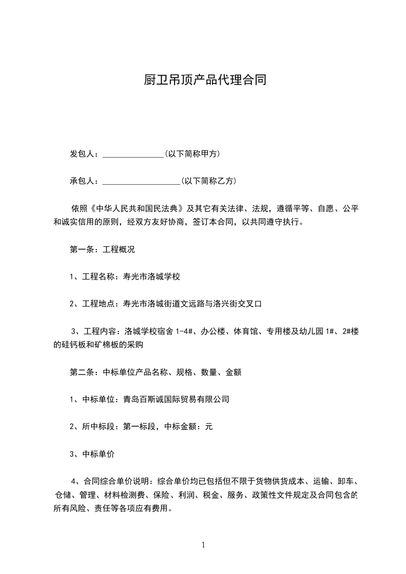 1.乙方代理销售甲方的产品为 :____