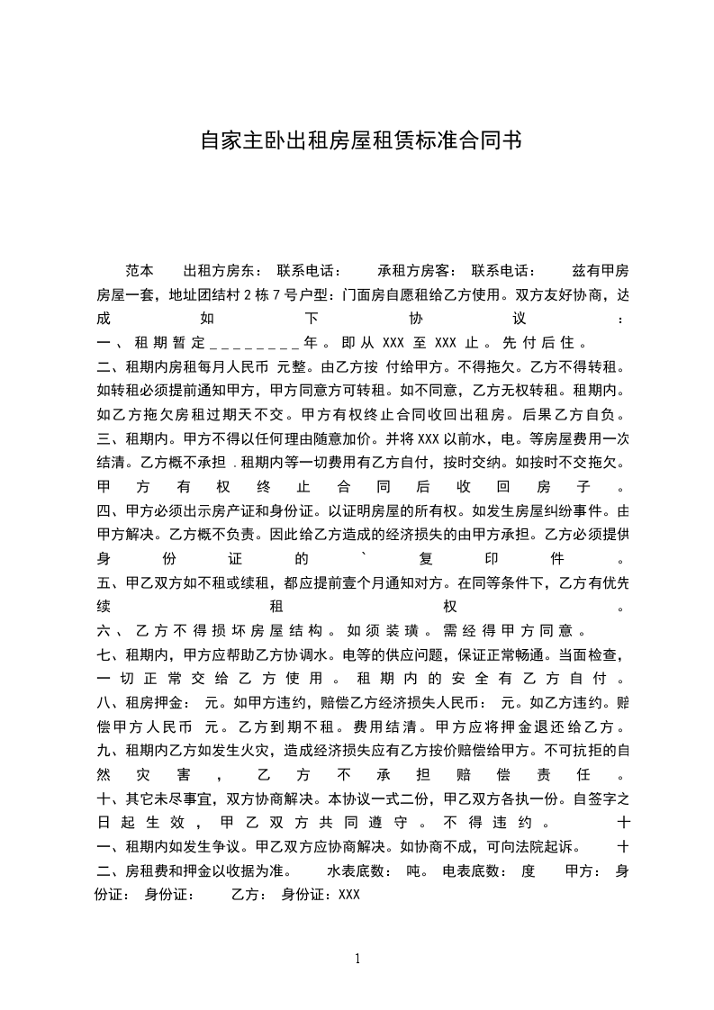 二、房租费和押金以收据为准。 水表底数: 吨。 电表底数: 度 甲方: 身份证: 身份证: 乙方: 身份证:XXX