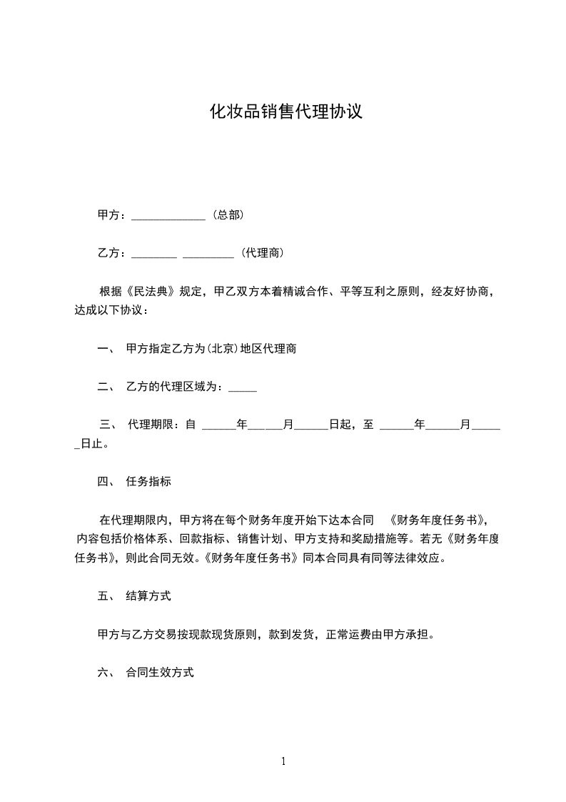 一、 甲方指定乙方为(北京)地区代理商