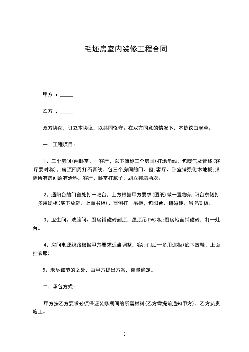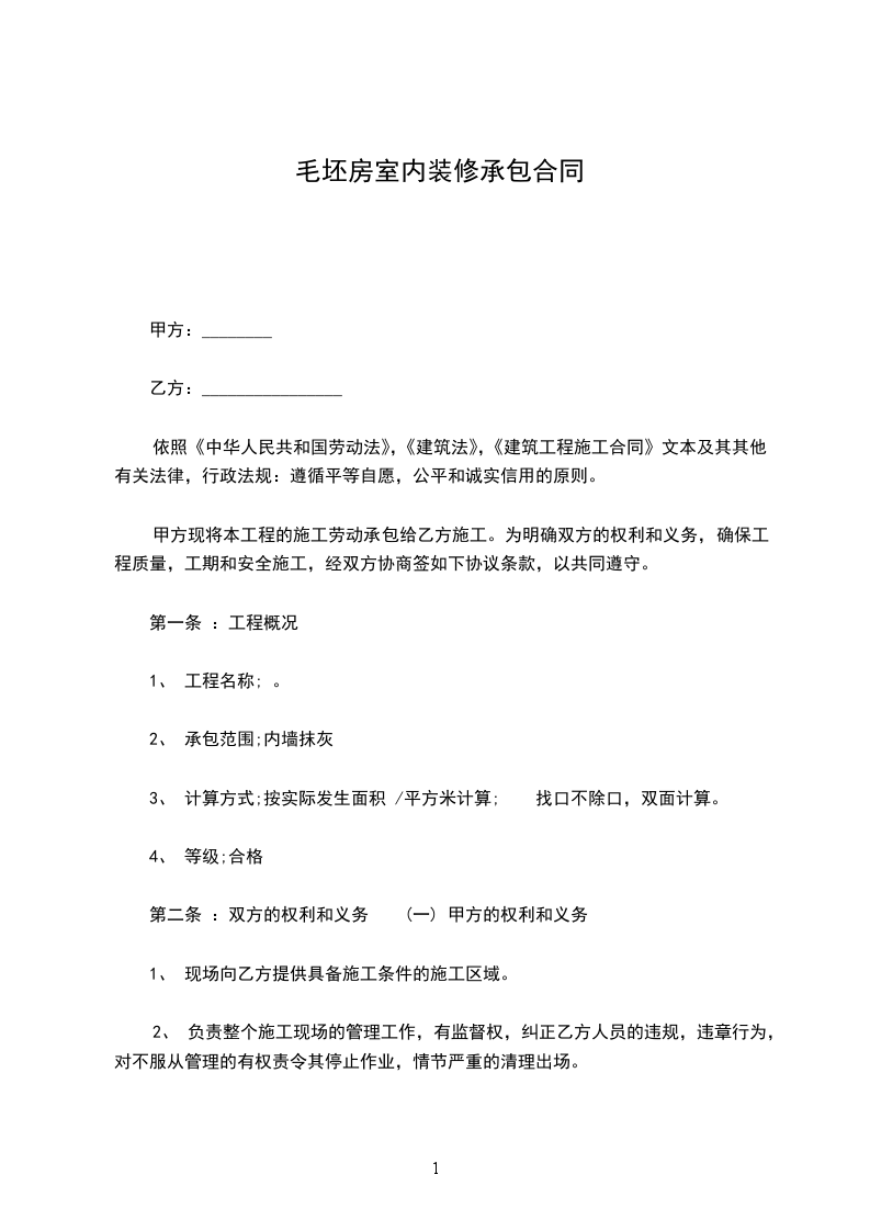 2、 承包范围;内墙抹灰