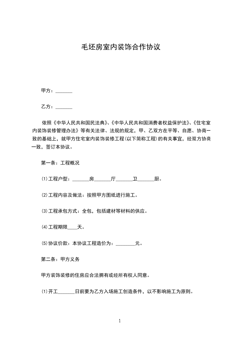 甲方现将本工程的施工劳动承包给乙方施工。为明确双方的权利和义务,确保工程质量,工期和安全施工,经双方协商签如下协议条款,以共同遵守。