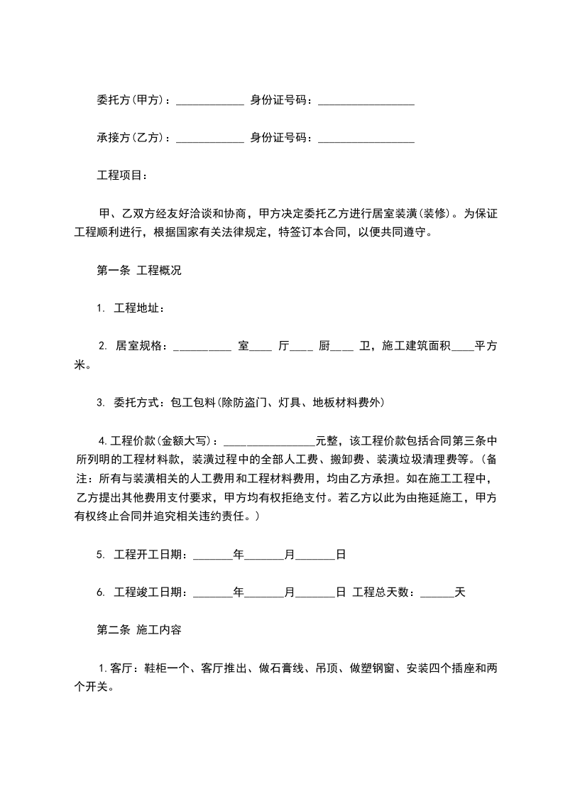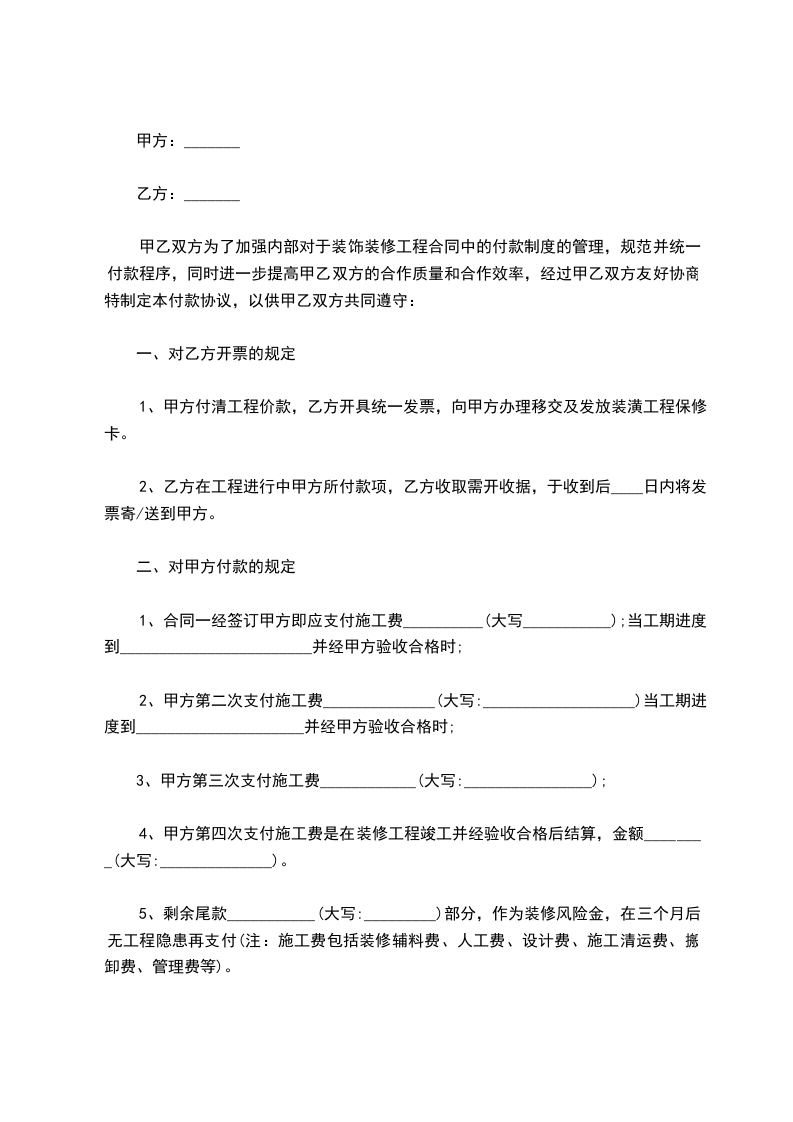 6、 除业主及甲方原因照成不能正常施工外,乙方不得中断施工,否则不与办理结算。