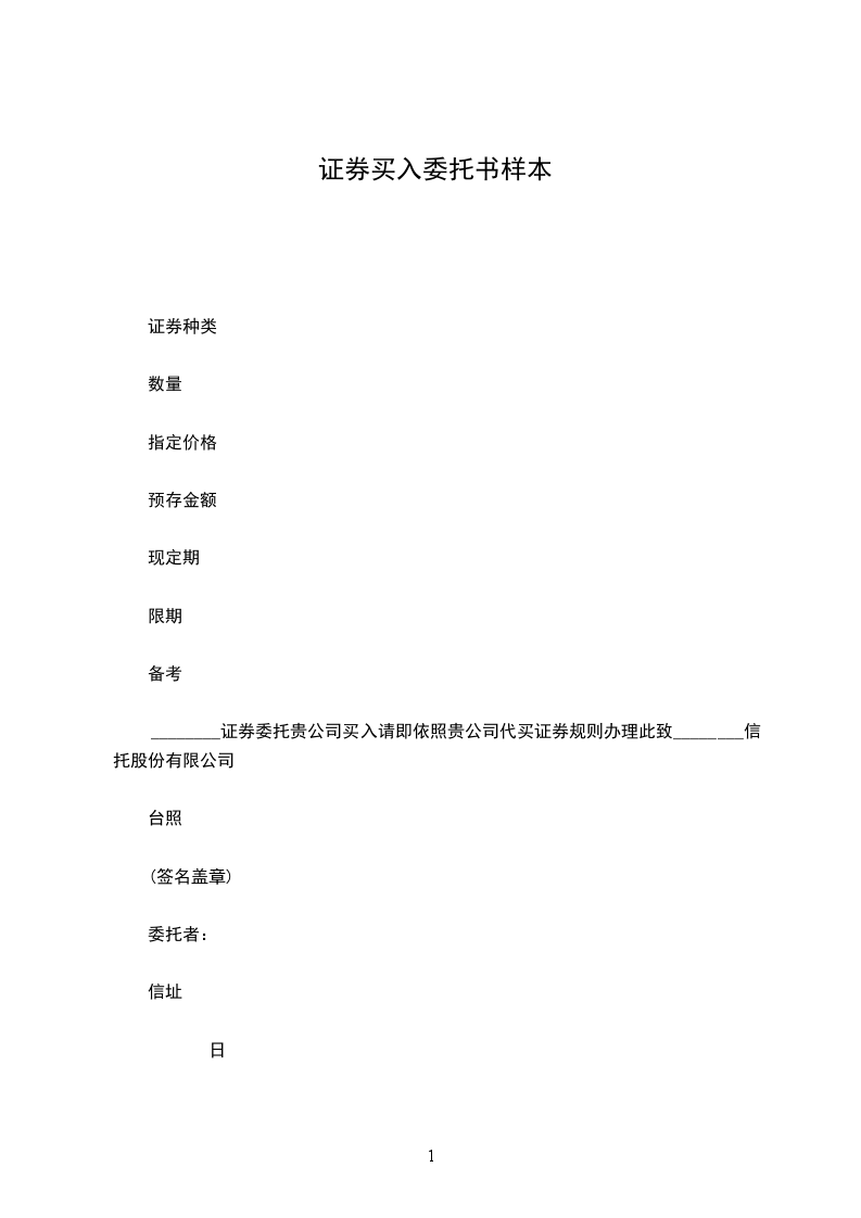 ________证券委托贵公司买入请即依照贵公司代买证券规则办理此致________信托股份有限公司