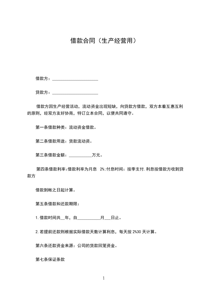 第二条 借款用途