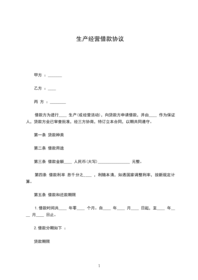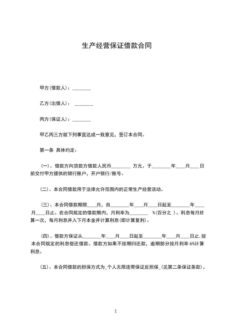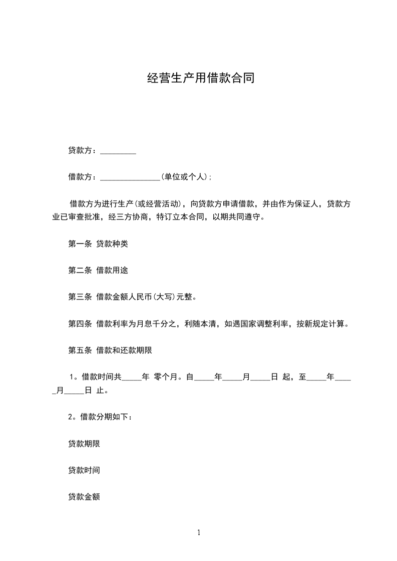 借款方为进行____ 生产(或经营活动),向贷款方申请借款,并由____ 作为保证人,贷款方业已审查批准,经三方协商,特订立本合同,以期共同遵守。