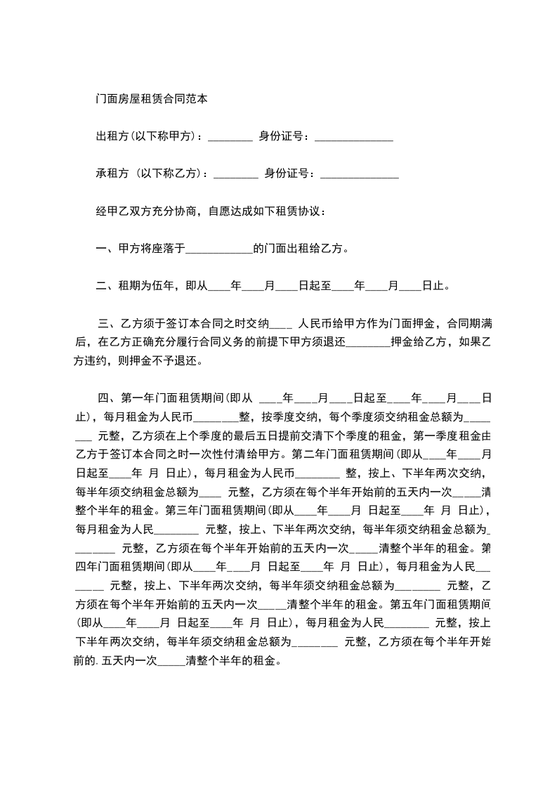 五、房屋租赁期为 ,从年月____日至________年____月____日。在此期间,任何一方要求终止合同,须提前一个月通知对方;房租租赁到期后,乙方有优先续租权。