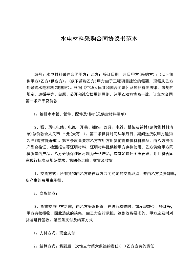 甲方由______工程项目建设的需要,现需从乙方处采购水电材料(或器材)。根据《中华人民共和国民法典》及其他有关法律、法规的规定,遵循平等、自愿、公开和诚实信用的原则,经甲乙双方协商一致,订立本合同。