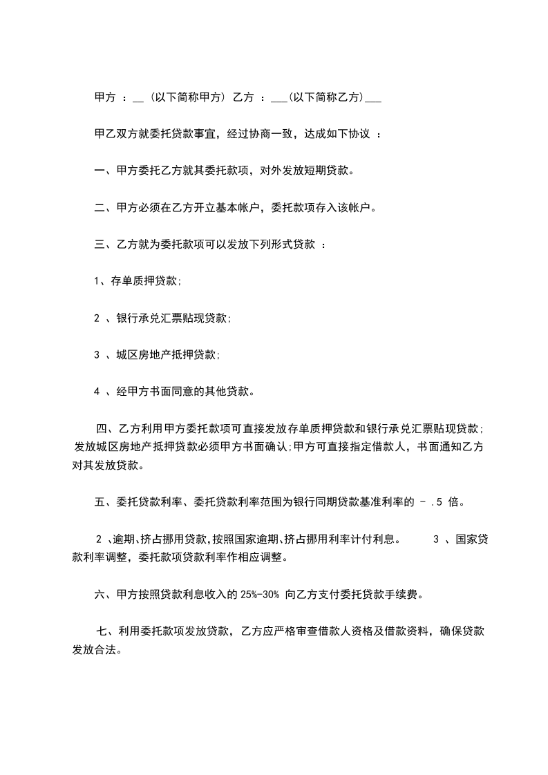 一、甲方委托乙方就其委托款项,对外发放短期贷款。