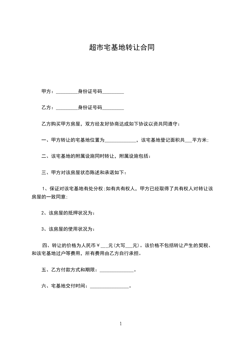 四、转让的价格为人民币¥___元(大写___元)。该价格不包括转让产生的契税、和该宅基地过户等费用,所有费用由乙方自行承担。