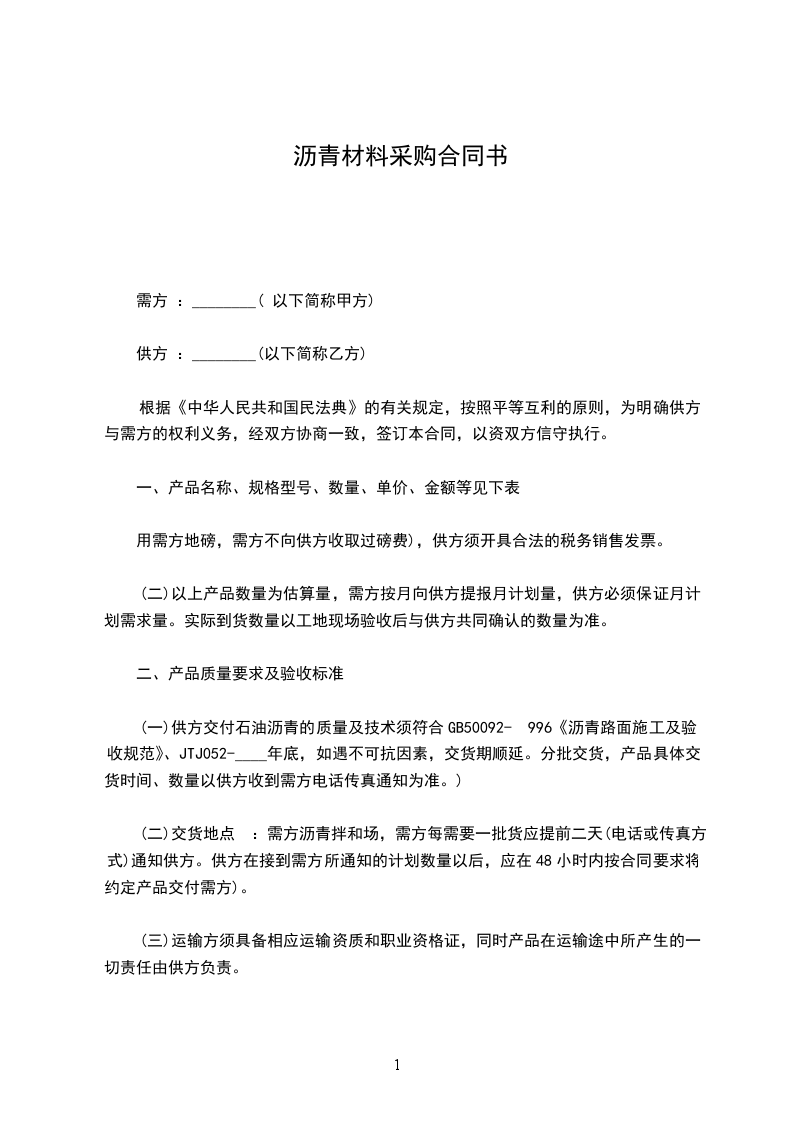 (一)供方交付石油沥青的质量及技术须符合GB50092- 996《沥青路面施工及验收规范》、JTJ052-____年底,如遇不可抗因素,交货期顺延。分批交货,产品具体交货时间、数量以供方收到需方电话传真通知为准。)