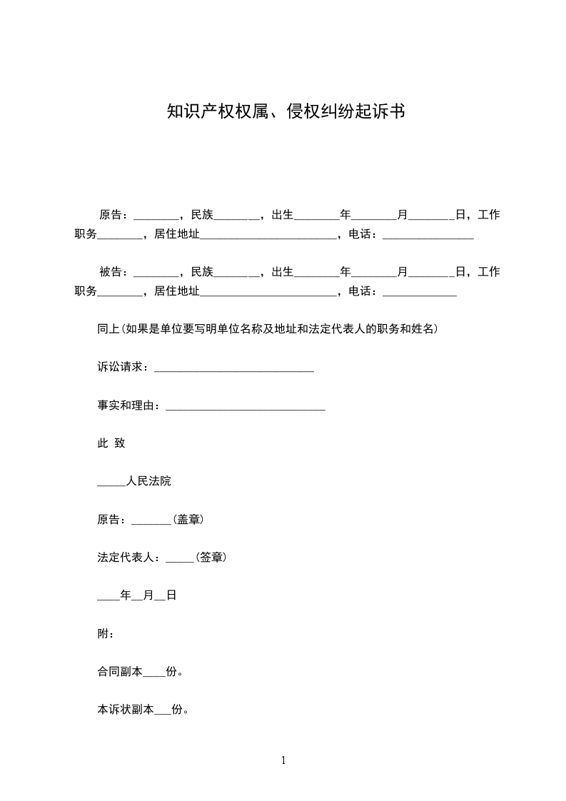 原告:________,民族________,出生________年________月________日,工作职务________,居住地址________________________,电话:________________