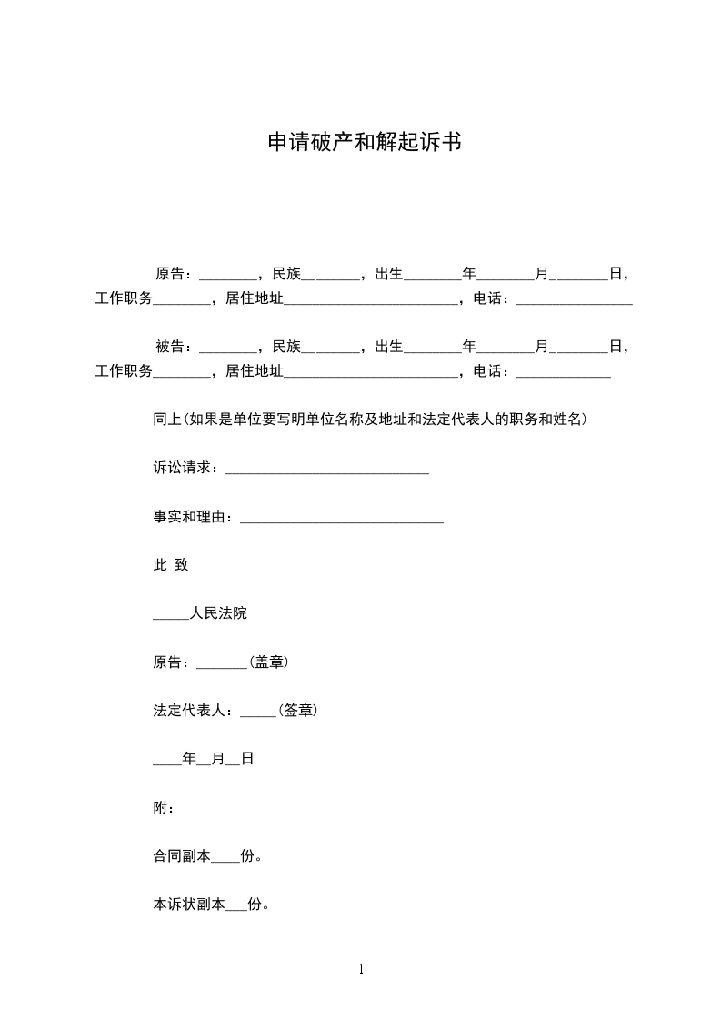 申请破产和解起诉书