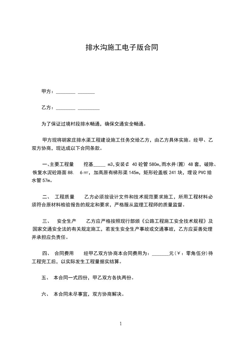 甲方现将胡家庄排水渠工程建设施工任务交给乙方,由乙方具体实施。经甲、乙双方协商,现达成以下合同条款。