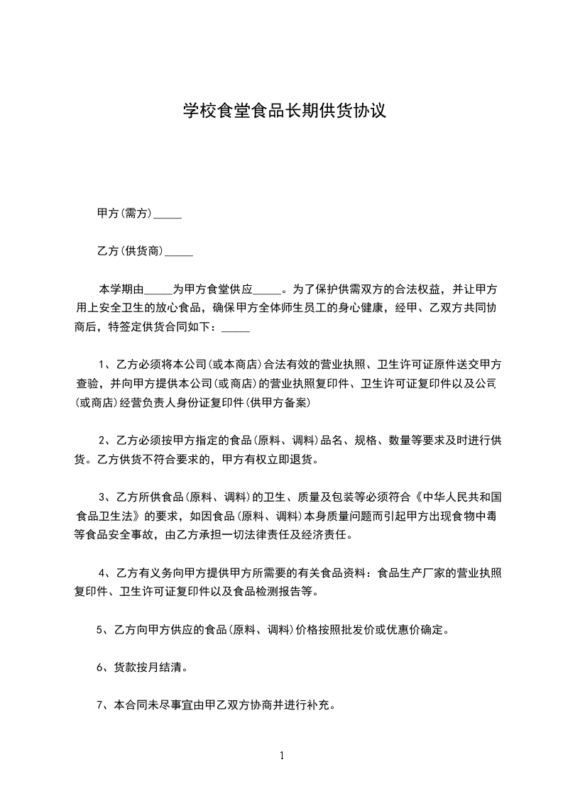 本学期由_____为甲方食堂供应_____。为了保护供需双方的合法权益,并让甲方用上安全卫生的放心食品,确保甲方全体师生员工的身心健康,经甲、乙双方共同协商后,特签定供货合同如下:_____