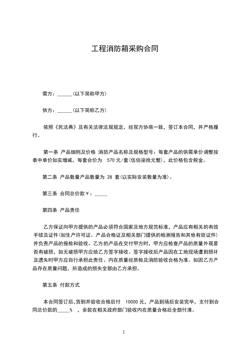 第一条 产品细则及价格 消防产品名称及规格型号:每套产品的供需单价调整按表中单价如实增减,每套合价为 570元/套(伍佰柒拾元整),此价格包含税金。