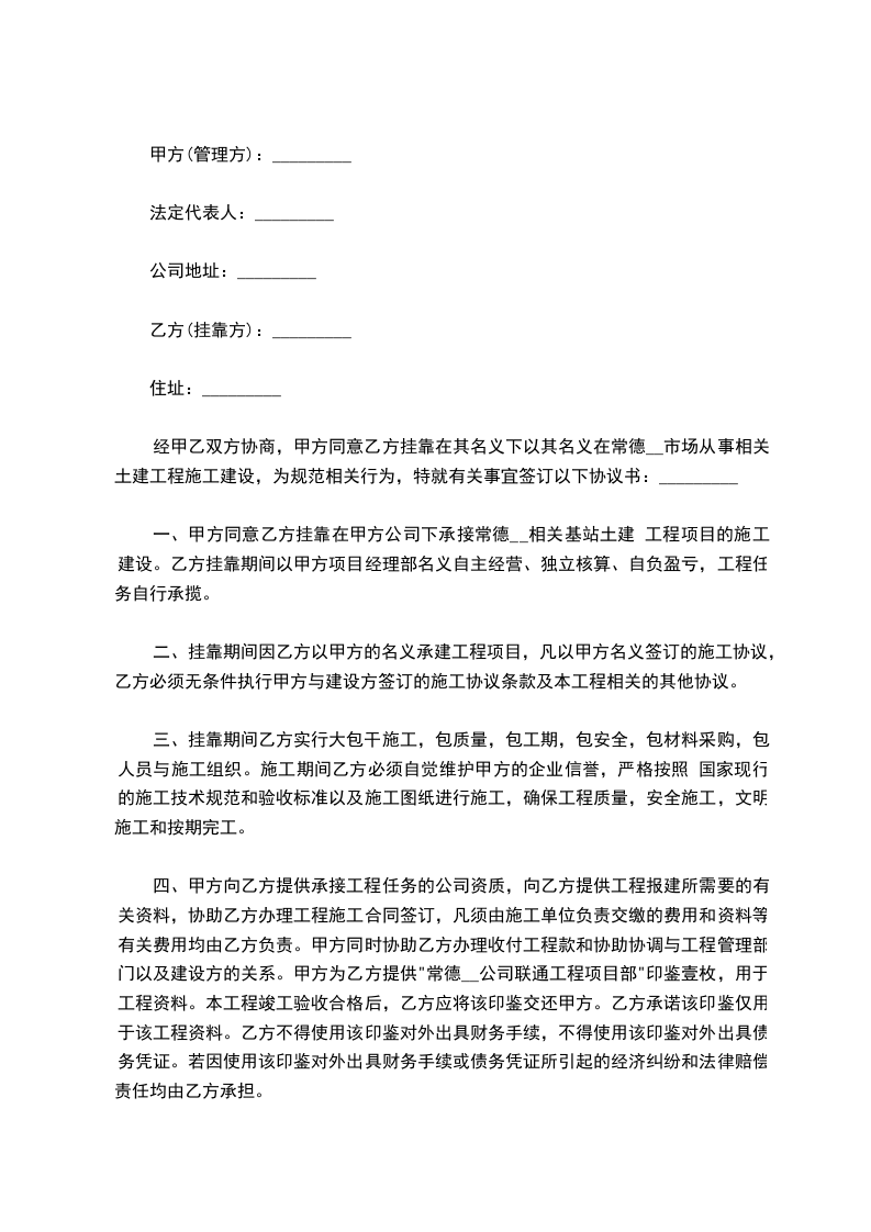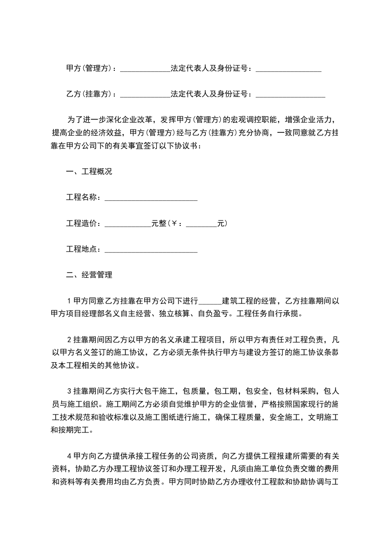 经双方协商,一致同意乙方挂靠在甲方企业之下,从事甲方经营许可证范围内的经营项目。同时,甲乙双方订立本合同,明确双方的权利与义务及其挂靠期内的注意事项。