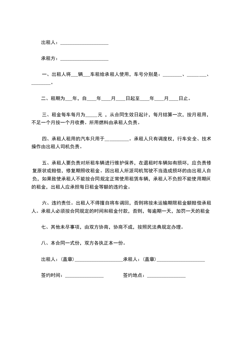 一、出租人将___辆___车租给承租人使用,车号分别是:________、________、________。