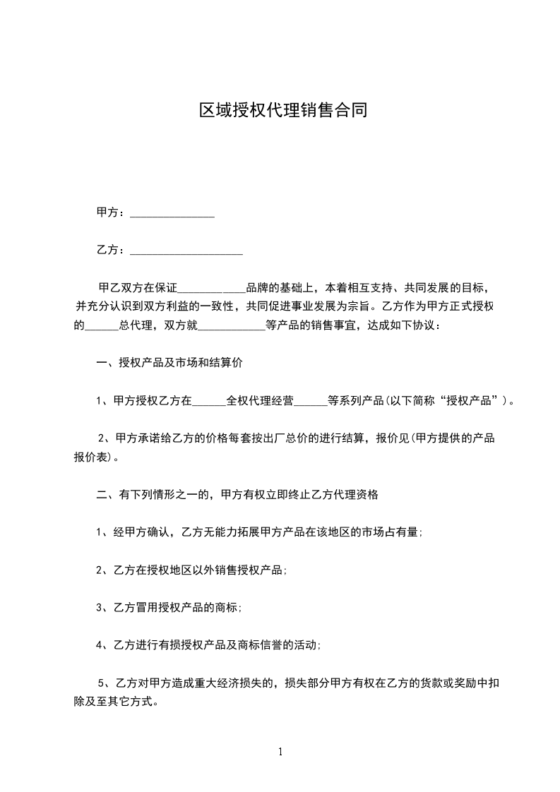 甲乙双方在保证____________品牌的基础上,本着相互支持、共同发展的目标,并充分认识到双方利益的一致性,共同促进事业发展为宗旨。乙方作为甲方正式授权的______总代理,双方就____________等产品的销售事宜,达成如下协议: