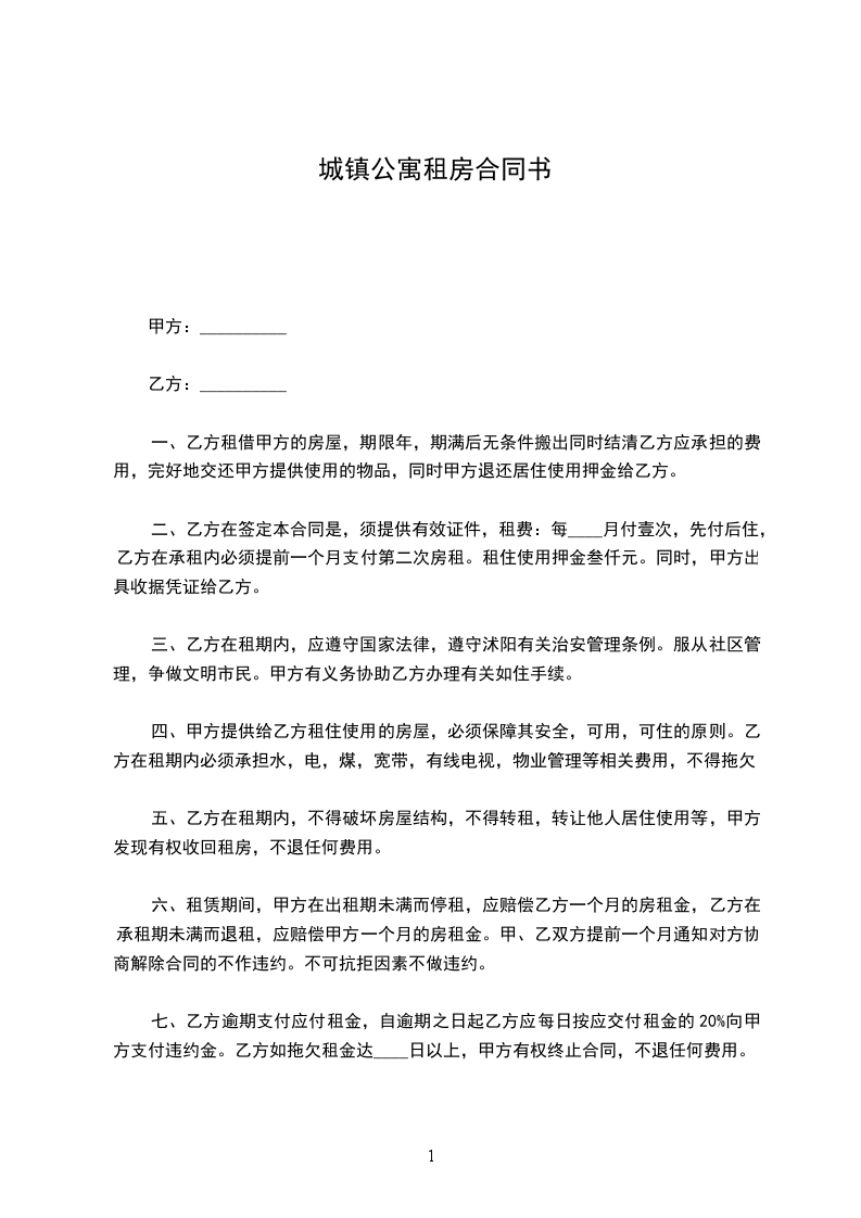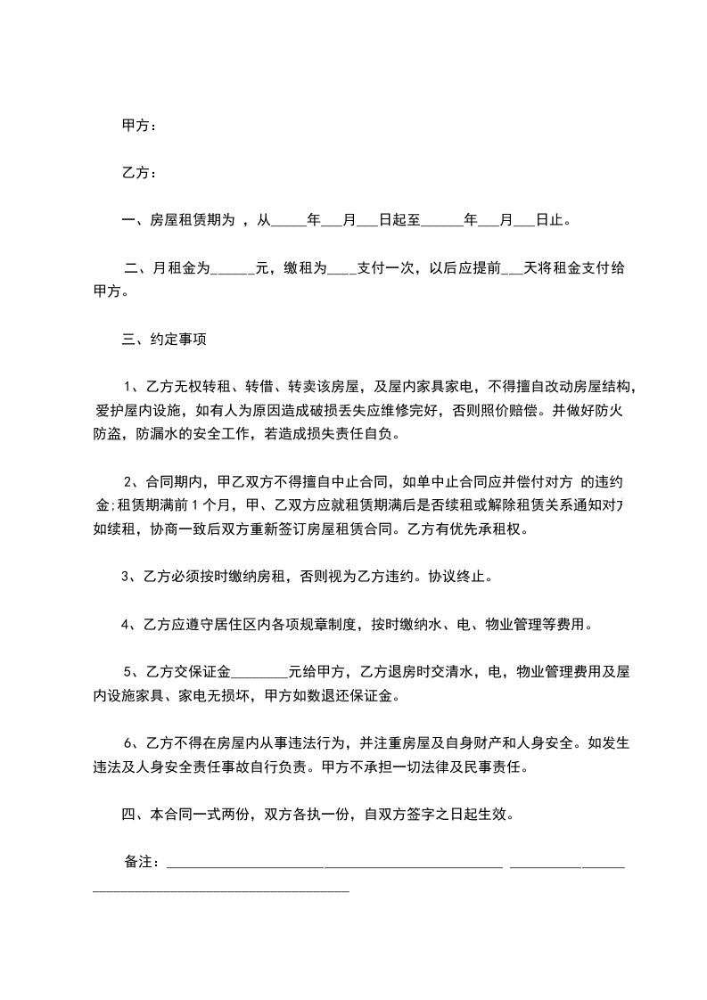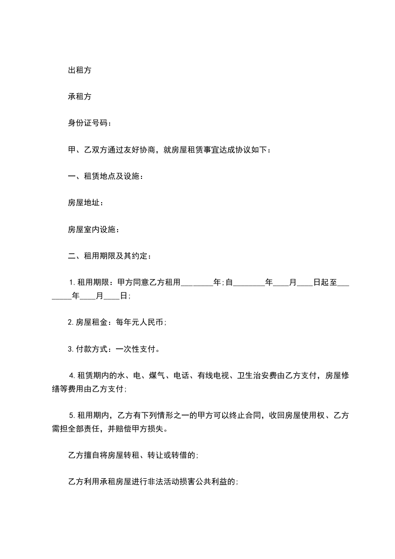 出租人(以下简称甲方):______________电话:______________承租人(以下简称乙方):______________电话:______________