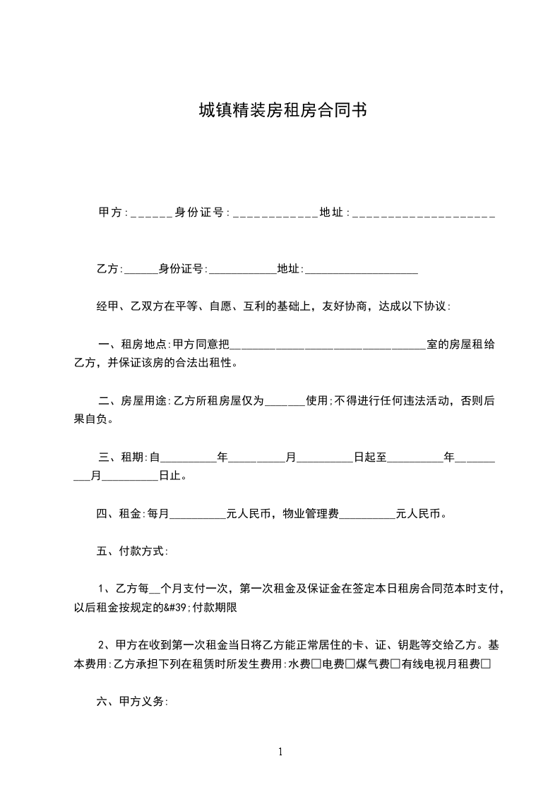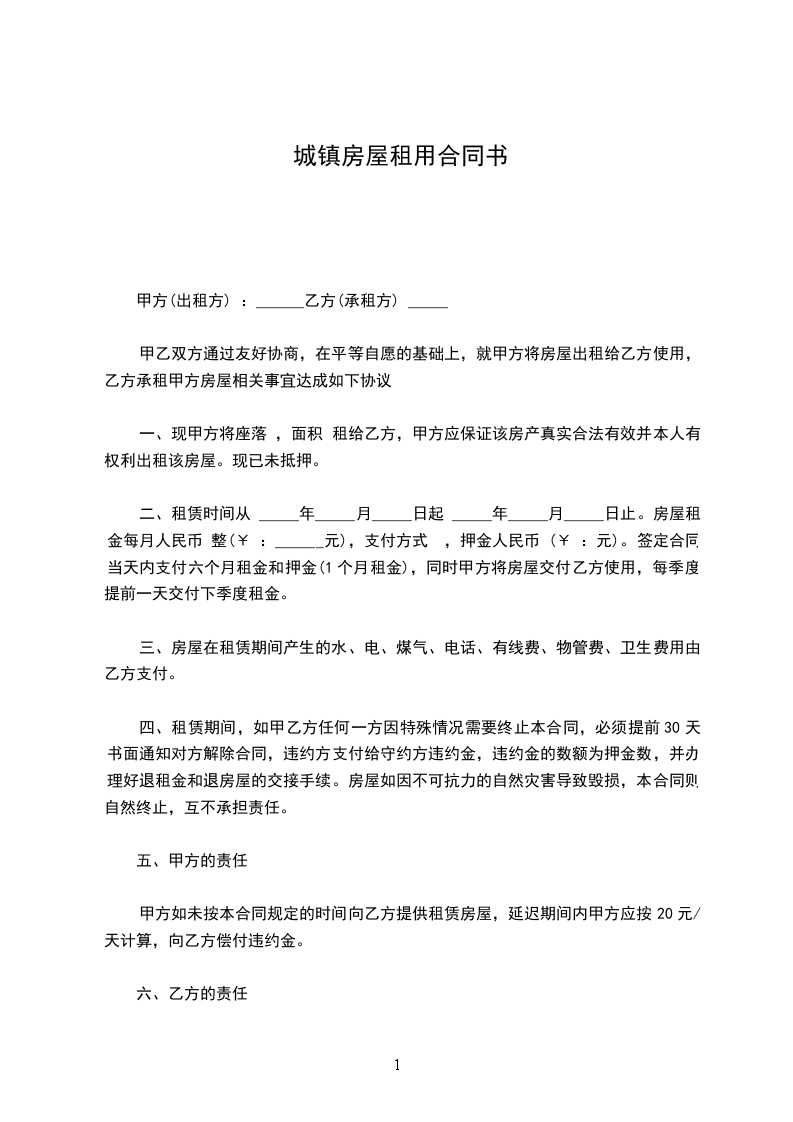 1)该房屋每月租金为人民币______元;大写:_____仟_____佰_____元整。