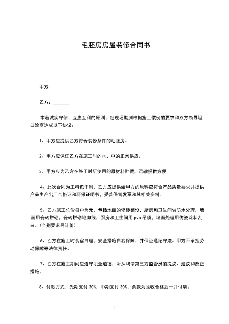 1、甲方应提供乙方符合装修条件的毛胚房。