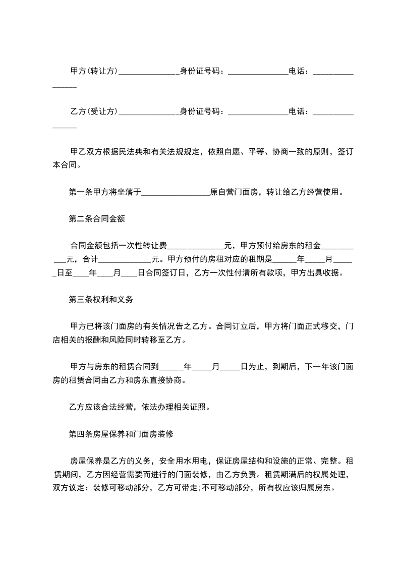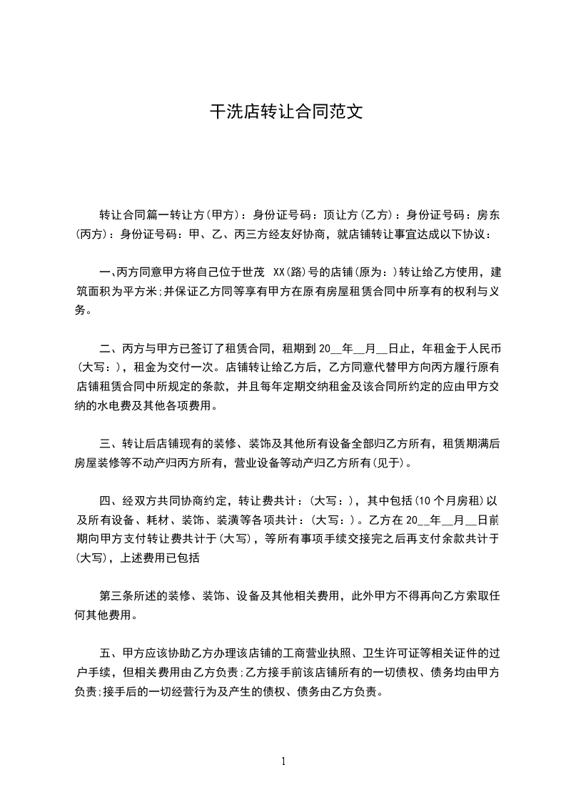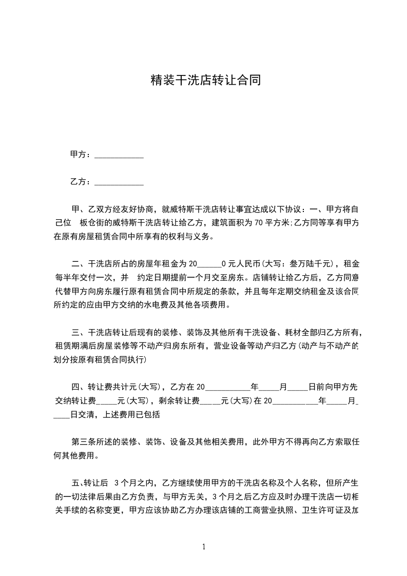 经甲、乙双方友好协商,甲方同意将______市______区______路______号的_________干洗店转让给乙方,并达成以下协议: