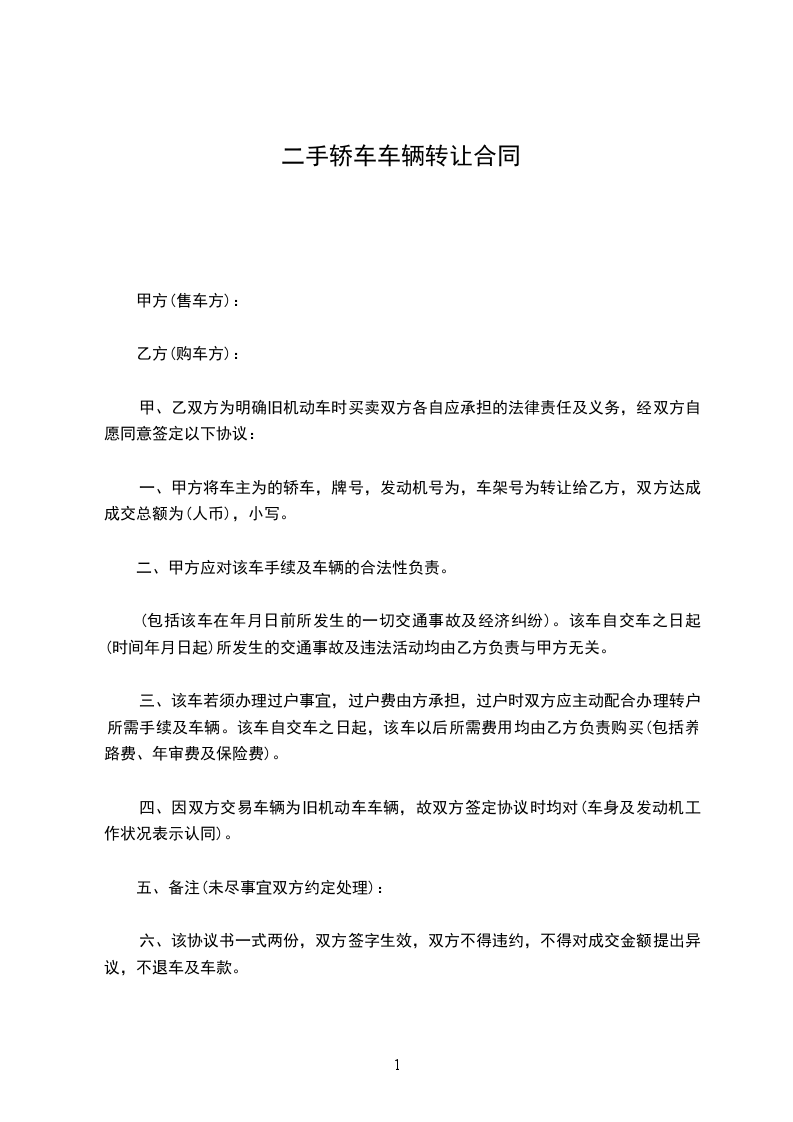 第二条汽车价格经双方当事人协商后确定该车的转让价为人民币_________________元(元)。