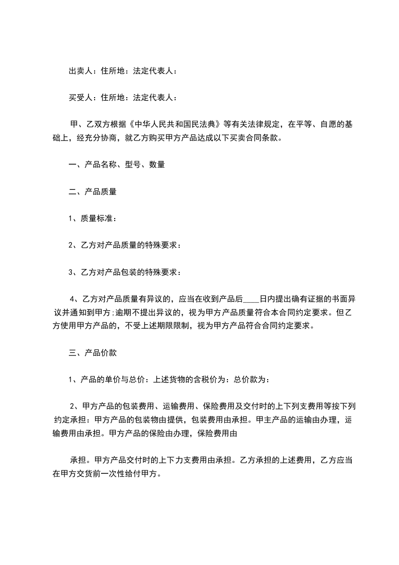 第十四条 本合同一式四份,双方各执二份,具有同等法律效力。 出卖方: 买受方: 代表: 代表:________年____月____日