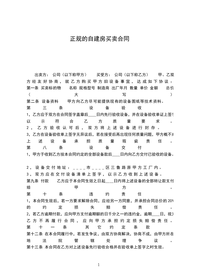 1,甲方于收到乙方按本合同约定的全部设备款后____日内向乙方交付已验收的设备。