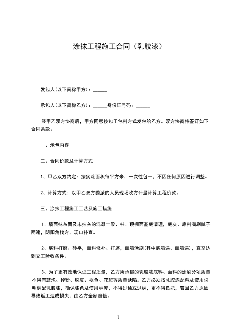 1、甲乙双方约定:按实涂面积每平方米,一次性包干,不因任何原因进行调整。