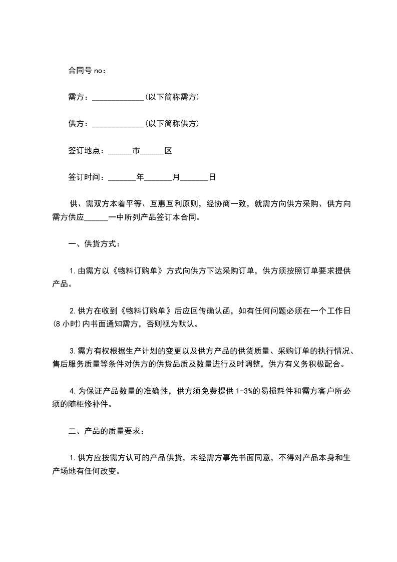 1.由需方以《物料订购单》方式向供方下达采购订单,供方须按照订单要求提供产品。