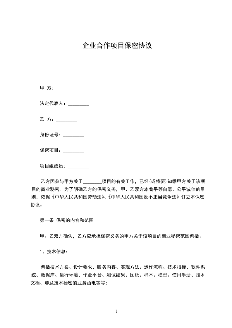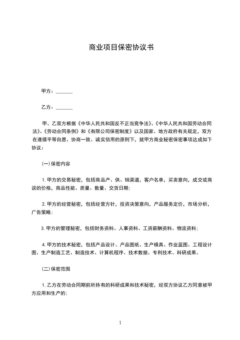 乙方因参与甲方关于________项目的有关工作,已经(或将要)知悉甲方关于该项目的商业秘密。为了明确乙方的保密义务,甲、乙双方本着平等自愿、公平诚信的原则,依据《中华人民共和国劳动法》、《中华人民共和国反不正当竞争法》订立本保密协议。