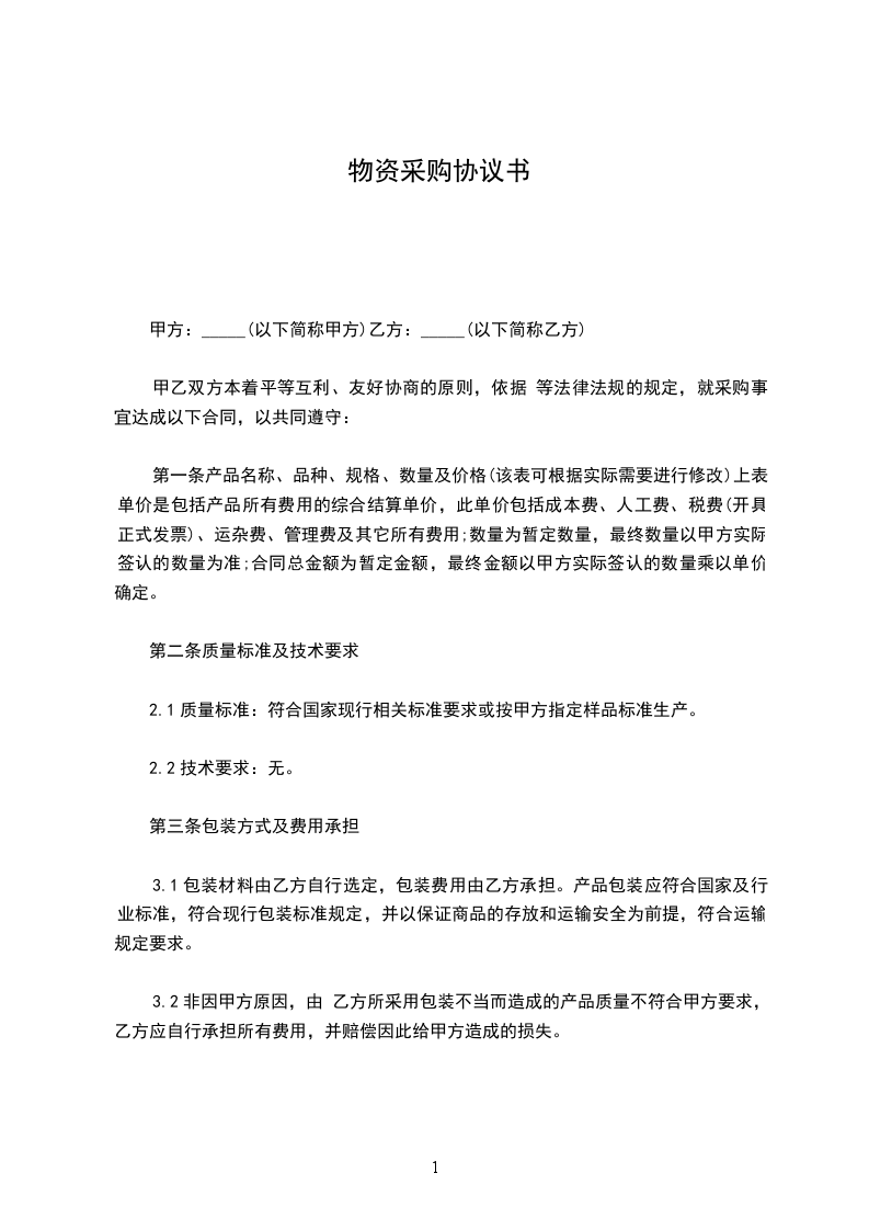 3.1包装材料由乙方自行选定,包装费用由乙方承担。产品包装应符合国家及行业标准,符合现行包装标准规定,并以保证商品的存放和运输安全为前提,符合运输规定要求。