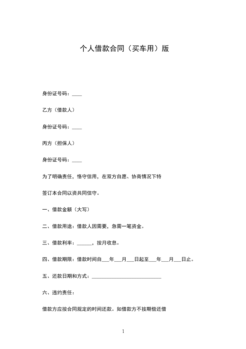乙方(借款人)____________身份证号码:___________________________