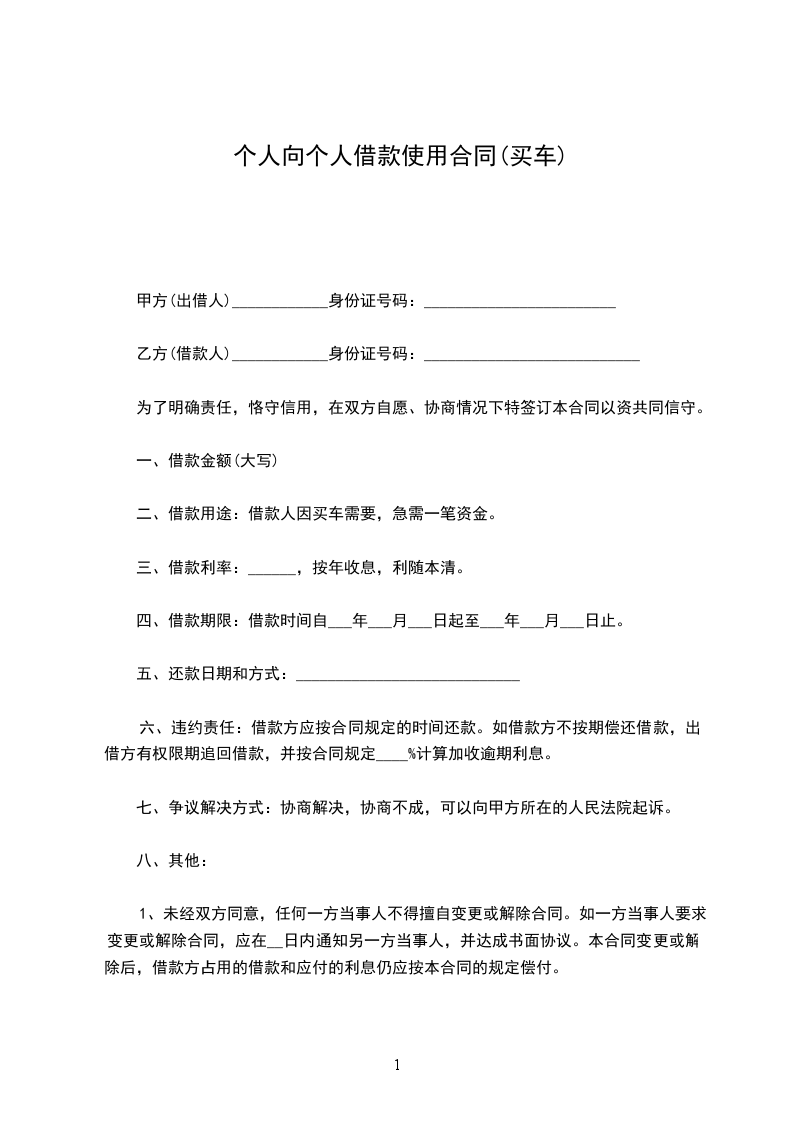 1、未经双方同意,任何一方当事人不得擅自变更或解除合同。如一方当事人要求变更或解除合同,应在__日内通知另一方当事人,并达成书面协议。本合同变更或解除后,借款方占用的借款和应付的利息仍应按本合同的规定偿付。