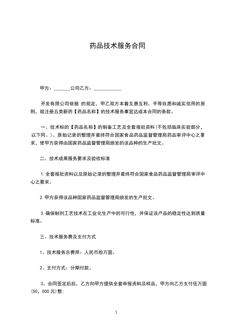 开发有限公司依据 的规定,甲乙双方本着互惠互利、平等自愿和诚实信用的原则,就注册五类新药【药品名称】的技术服务事宜达成本合同的条款。