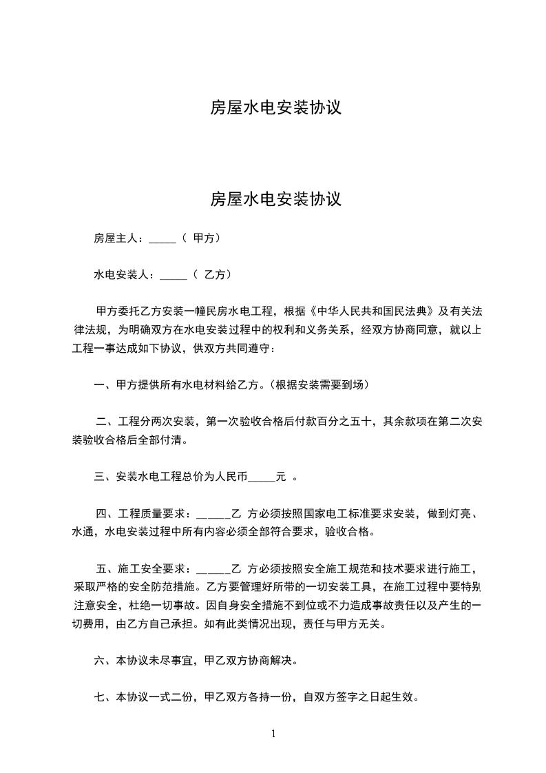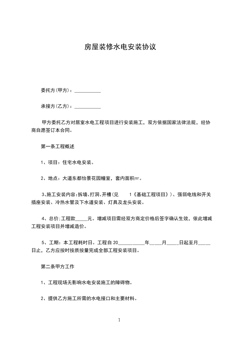 (五)水电工程保修半年,过了保修期乙方来维护甲方应支付相应费用。
