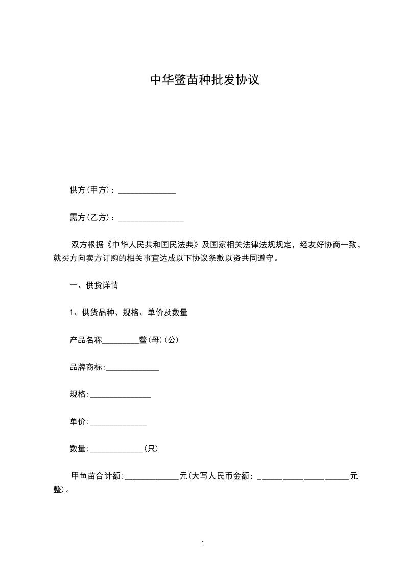 甲鱼苗合计额:_____________元(大写人民币金额:______________________元整)。
