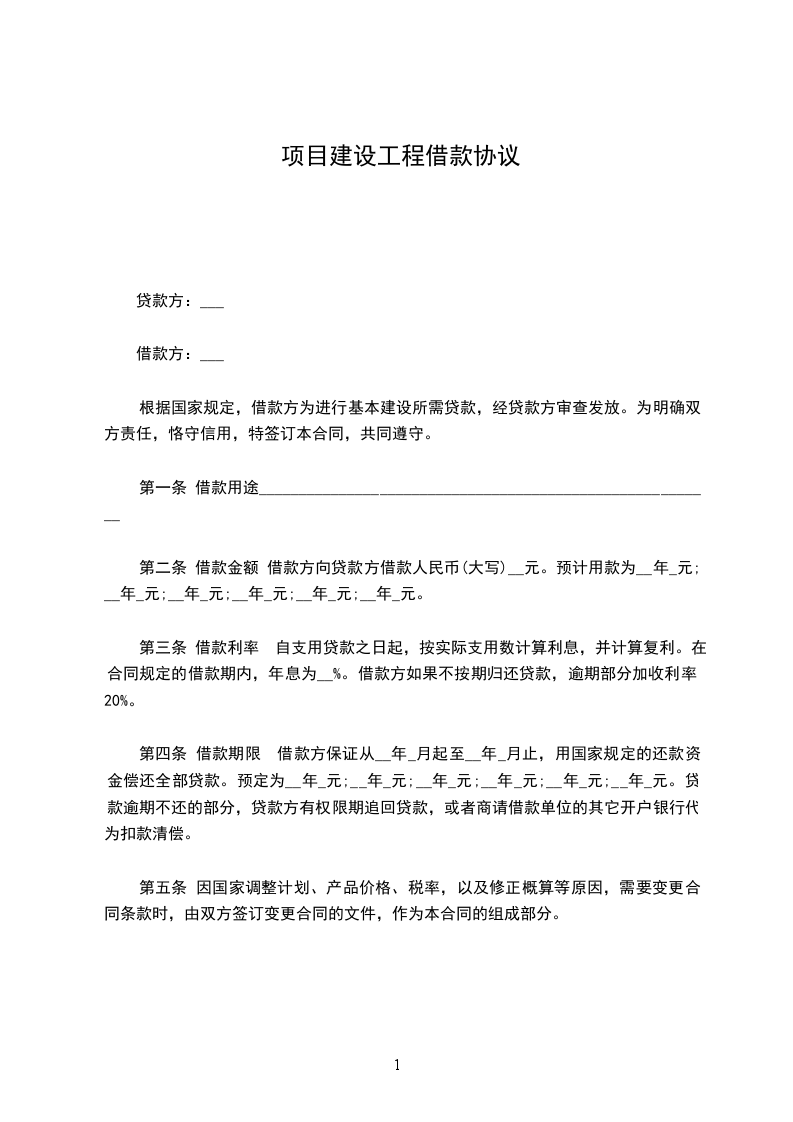 第二条 借款金额 借款方向贷款方借款人民币(大写)__元。预计用款为__年_元;__年_元;__年_元;__年_元;__年_元;__年_元。