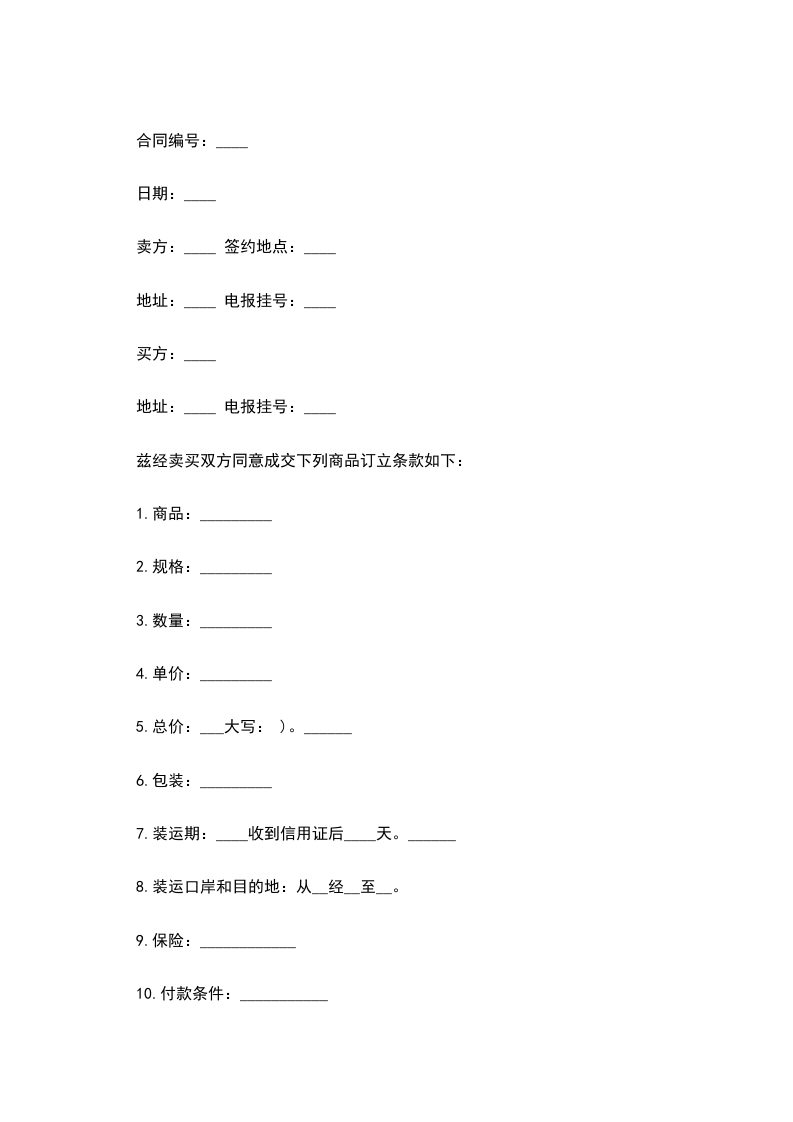 12.其他条款:质量、数量和重量的检验可于装货港一次进行。若要求提供所需的其他证件,其办理手续费、领事签证费应由买方负担。
